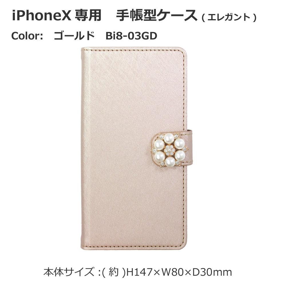 女性らしい上品なデザインが印象的な手帳型ケースです。 製造国:中国 素材・材質:ハードケース/PC(ポリカーボネート)生地/不織布 商品サイズ:約H147×W80×D30mm 重量:約94g 仕様:対応機種:iPhone X ※サプライヤー直送品 ご注文後3~4営業日後の出荷となります【商品名】iPhoneX専用 手帳型エレガントケース ゴールド Bi8-03GD