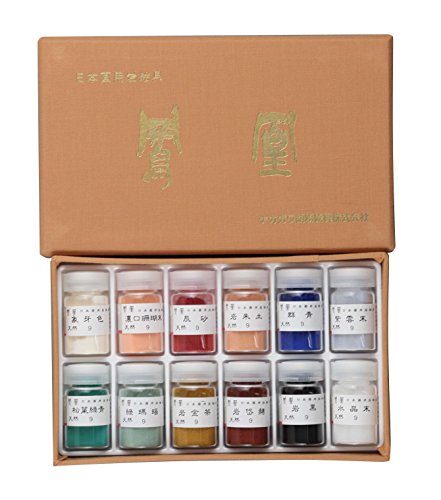 -. Feature : セット色 象牙色、濃口珊瑚末、岩辰砂、岩朱土、岩群青、紫雲末、松葉緑青、緑瑪瑙、岩金茶、岩岱赭、岩黒、水晶末 / ・各色、標準番号9番、15g入です。ただし、紫雲末・水晶末は、12g入です。 / 藍銅鉱、孔雀石、水晶、メノウ、珊瑚など、代表的な天然鉱物を粉砕してつくった天然岩絵具12色セット。