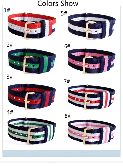 | [해외]최고 품질의 럭셔리 다채로운 20 미리메터 나일론 시계 스트랩 패션 시계 밴드 로즈 골드 컬러 8 모델 시계 TEMPTER 2017 |