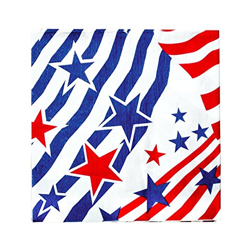 4th of July Stars & Stripes Party Bundle,Patriotic Supplies,Dinner and Dessert Napkins, Cups, Straws and Table Cover