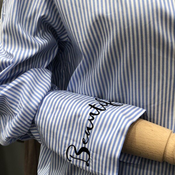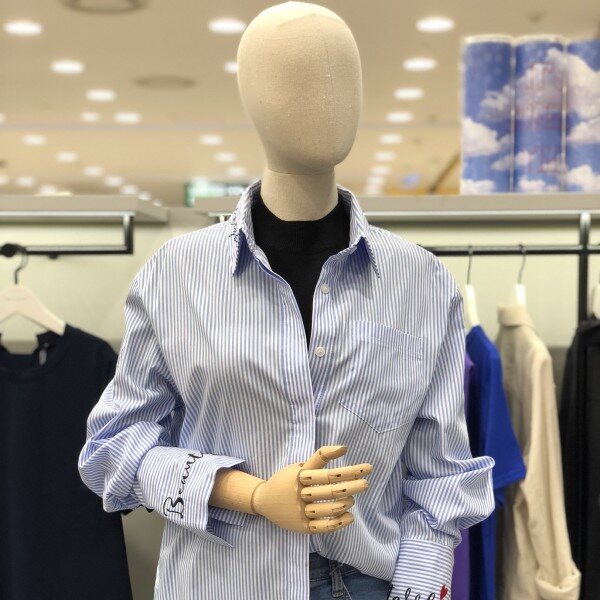 유니크한 레터링 포인트 셔츠입니다 카라 소매 디테일로 다양한 아우터에 이너로 매치하여 엣지 있는 스타일룩을 연출 하기 좋은 베이직 아이템입니다