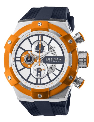 Studio : Brera Orologi Publisher : Brera Orologi Binding : Watch Product Description Brera Orologi - Supersportivo - Orange/White - BRSSC4916 - Blazing a new trail in casual and sports elegance, the 48mm oversized SUPERSPORTIVO has an eye for detail and a sophistication to match. Closely adhering to the BRERA watch making philosophy, the SUPERSPORTIVO will appeal to watch collectors looking for an exceptional yet classic addition to their watch assortment. Much the same as all BRERA timepieces, the SUPERSPORTIVO comes with a signature brushed stainless steel case, extra thick hand applied indexes, signature 11mm BRERA crown and full Chrono function. Additionally, a complicated triple layer dial with cutout openings and unique cut out date disk highlighted by brushed steel accents completes the attention to quality and detail on this beautiful and elegant collection. Available in a variety of different case and dial finishes including a carbon fiber dial on the all-black reference, and all come with a black vulcanized rubber strap and signature BRERA square buckle. Case Material : Stainless Steel - Dial : Hand-Brushed White Steel - Case Size : 48mm - Movement : Miyota Quartz OS1A - Strap : Navy Blue Rubber - Crystal : K1 Anti-Reflective - Crown : 11mm - Water Resistant : 10 ATM Water Resistance 0