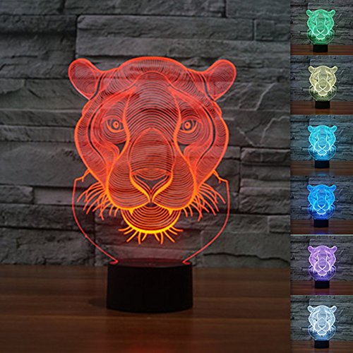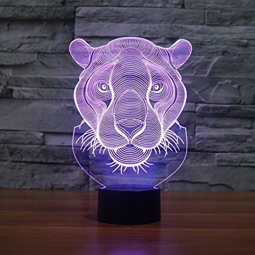 -. Title : 3D Tiger Shape Night Light Touch Table Desk Optical Illusion Lamps 7 Color Changing Lights Home Decoration Xmas Birthday Gift