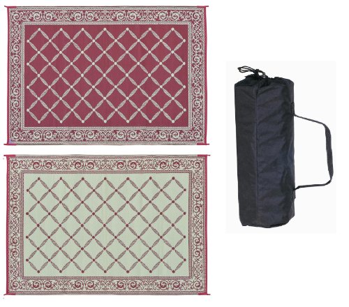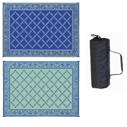 This reversible outdoor mat is designed for home patio or garden, creating your RV outdoor space, afternoons in the park or days at the beach. Sweep clean with a broom or spray clean with water. Woven polypropylene dries quickly to prevent mold and mildew and is coated with UV protection to resist sun damage and fading. Corner loops can be staked to hold it in place. Folds easily for storage in included carrying bag. Note: Viewing colors on the internet can be difficult. Different monitor and screen settings may not represent exact color hues. We do our best to represent the colors as accurately as possible.Feature