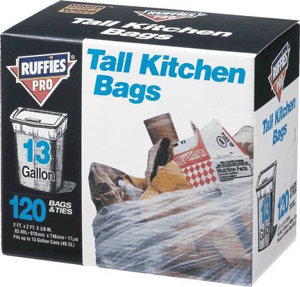 -. Title : Ruffies Pro 1124910 13 Gallon White Tall Kitchen Bags 120 Count