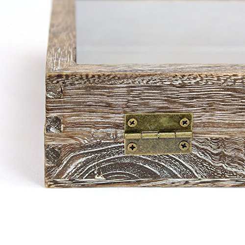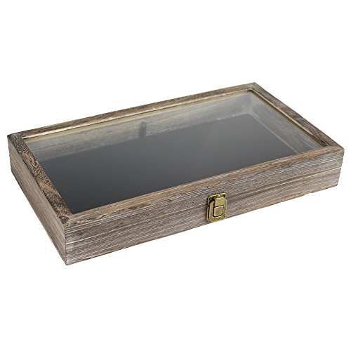 MATERIAL & SIZE— Made of glass, metal and wood with COFFEE color; Approximately measures 14 7/8'' x 8 1/2'' x 2 1/8''H; 1 1/2"H interior height from bottom of case to the glass lid; Inner Dimension: 14”W X 7 3/4”D