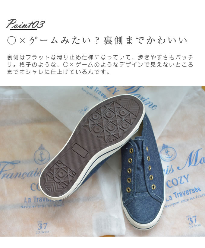 商品名Francais Marine cozy shoes ノーレーススニーカー