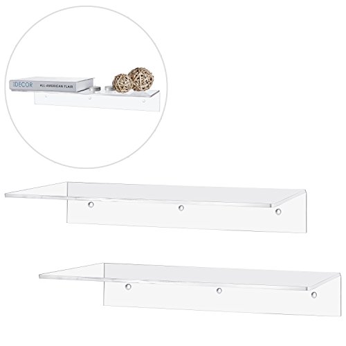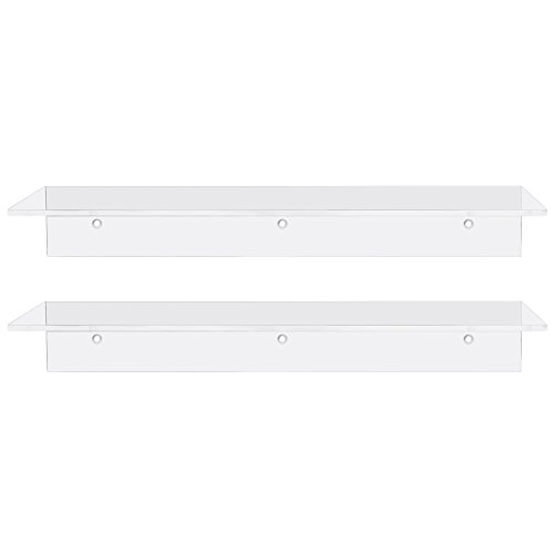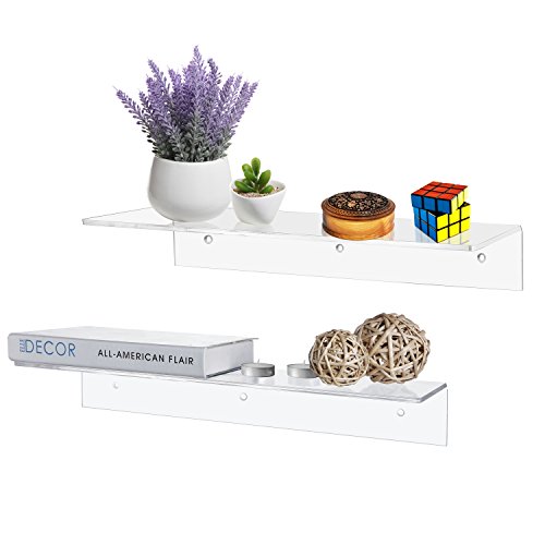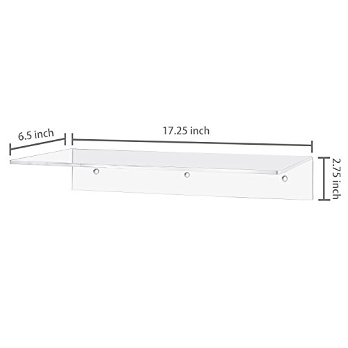 17 Inch Contemporary Clear Acrylic Floating Shelf / Wall Mounted Display Organizer, Set of 2