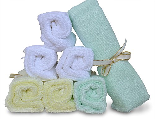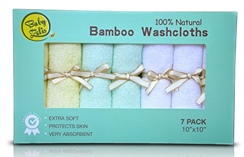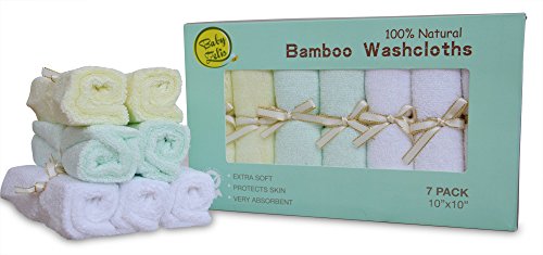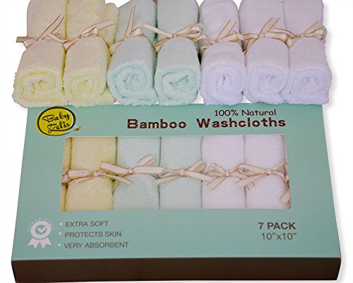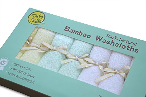 7 Extra Soft Baby Bath Washcloths (10"x10") by Baby Zelis, 100% Natural Bamboo Baby Towels, Perfect Gift for Sensitive Baby Skin