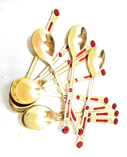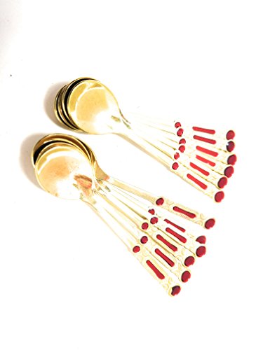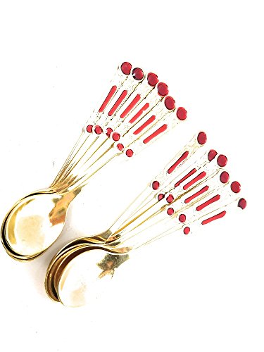 Set of 12 Embellished Spoons for Turkish Coffee or Espresso Gold with Red Design (Pattern #2)