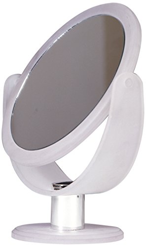 - Mirror stands 10-inches high and adjusts to any angle you need.