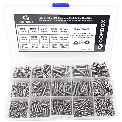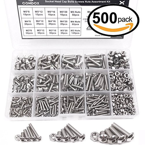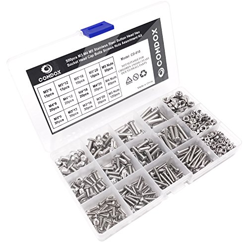 Comdox 500Pcs M3 M4 M5 Stainless Steel Button Head Hex Socket Head Cap Bolts Screws Nuts Assortment Kit