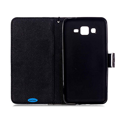 Galaxy Grand Prime Case,JanCalm [Wrist Strap Design][Kickstand] Pattern Premium PU Leather Wallet [Card/Cash Slots] Flip Cover for Samsung Galaxy Grand Prime*Including-ONE Crystal Pen (Nothing)
