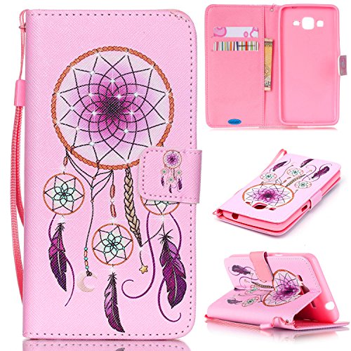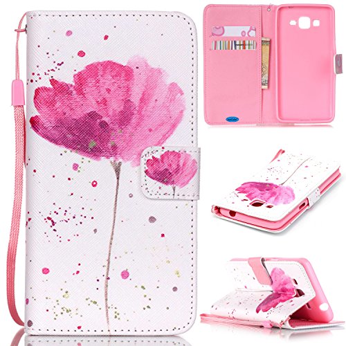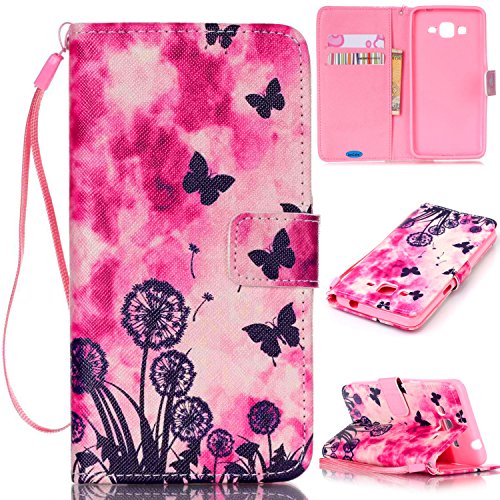 WALLET Style - Included 2 Card Slots And Money pocket - Carry around your ID, credit or debit cards, and cash without having to take your wallet with you.Built-in magnetic for secure closure.Stylish PU Leather Wallet Case for Samsung Galaxy Grand Prime.Detachable Wrist strap for carrying convenience