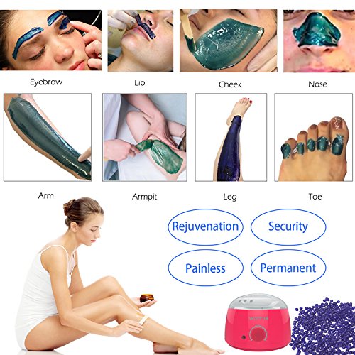 - HAIR REMOVAL WAX WARMER: New WONNIE Electric Hot Wax Warmer, Nontoxic, Secure-Safe and Efficient, widely used for multiple parts of your body . Can remove 98% your body hair like armpit, eyebrows, beard and some other body hair, leaving your skin soft and glowing.