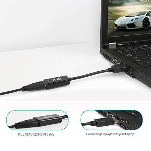 DP to HDMI, ICZI DisplayPort Male to HDMI Female Adapter ( 4K, Gold-Plated ) for Macbook, Chromebook Pixel, Surface Pro, HDTVs, Monitors, Projectors, and More - Black