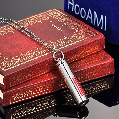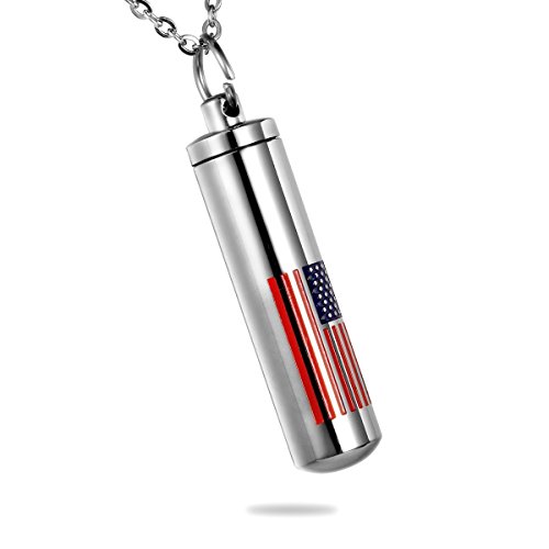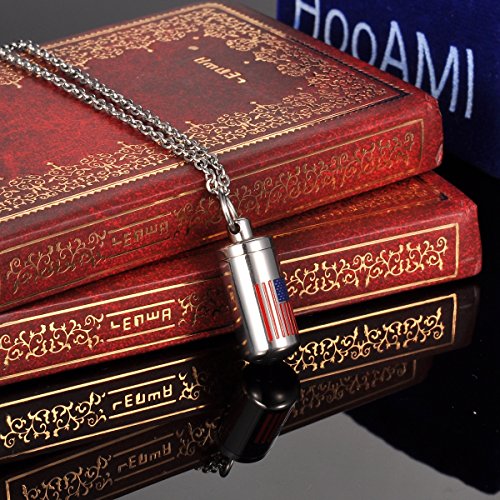 -. Title : HooAMI American Flag Cylinder Pendant Cremation Urn Necklace