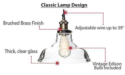 - EDISON BULB AND WHITE GLOVE INCLUDED – Includes canopy, cord, socket,fixture and a white glove that prevents the pendant from getting fingerprints during installation; 60-watt maximum light bulb recommended; 40"x11"