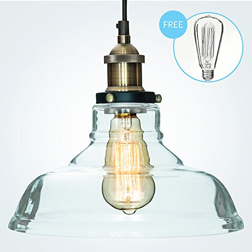Glass Pendant Light "The Loft" with Vintage Edison Light Bulb ($7 value) - Gorgeous Vintage Light Fixture, Single Bulb Chandelier Lighting - Industrial Design, Clear Glass Pendant by Comfify