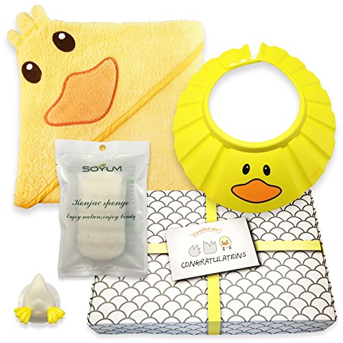 Gentle Care – Baby Shower Bath Gift Set - Soft 100% Cotton Hooded Bath Towel + Natural, Hypo-allergenic Konjac Sponge + Adjustable Foam Shampoo...
