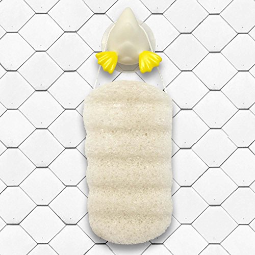 BATH TIME STARTS WITH ALL NATURAL SUPER-SOFT KONJAC SPONGE. USE LESS SOAP AND CREATE MORE LATHER. Perfect for delicate and tender skin, including babies with sensitive skin or eczema. Hypoallergenic, Fragrance Free, 100% Coloring & Additive Free. THEMED SUCTION TOY HOOK for drying your natural konjac sponge properly