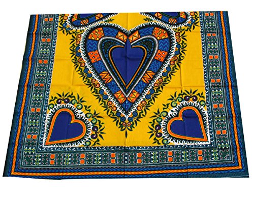 RaanPahMuang African Dashiki Heart Cotton Fabric Suitable for 1 Shirt Design, Yellow