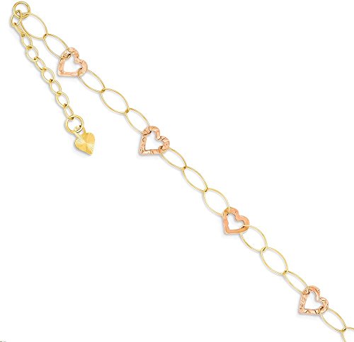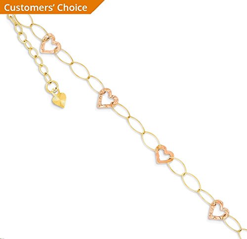 ✅️ ▶▶TOP JEWELRY GIFTS HOLIDAY SALE!!!◀◀ LIMITED SUPPLY ORDER NOW BEFORE IT'S SOLD OUT: Solid 14k Two-tone Gold / Length: 9in / Width: 6mm / Hypoallergenic / Nickel Free / Gifts Jewelry Anklets Heart Keys