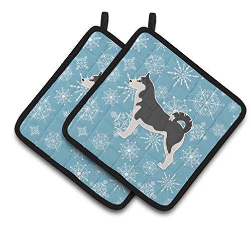 Caroline's Treasures Winter Snowflake Siberian Husky Pair of Pot Holders BB3580PTHD, 7.5HX7.5W, Multicolor