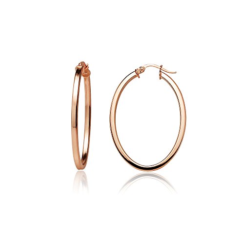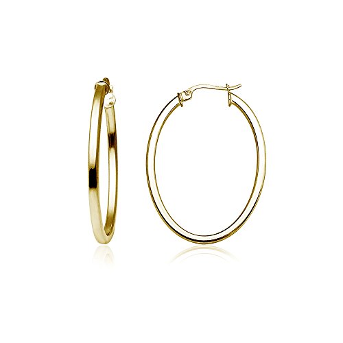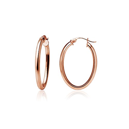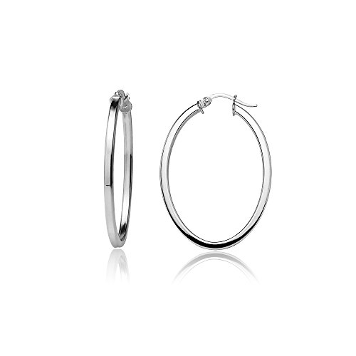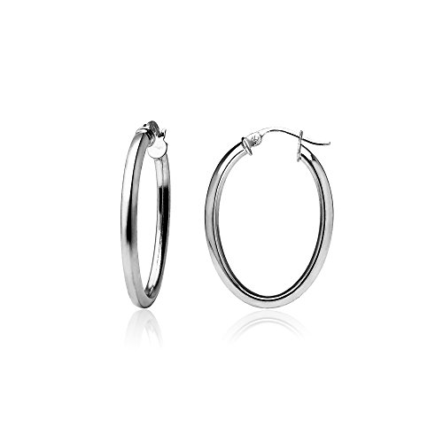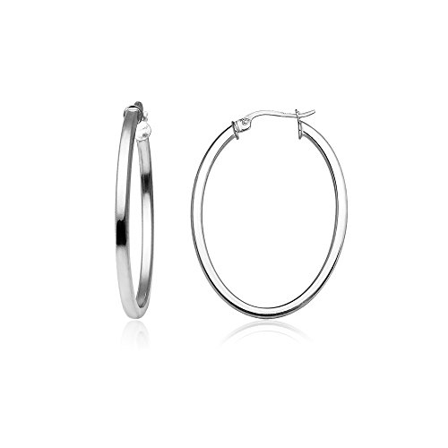 Sterling Silver 2mm Oval Square-Tube Hoop Earrings, 20mm, 25mm, 30mm