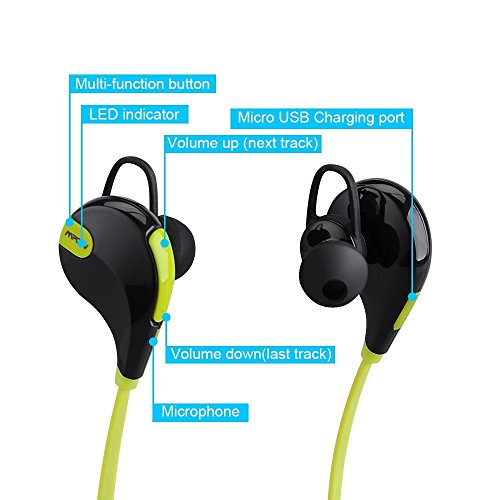 -. Feature : • Q7 Wireless Bluetooth Headset provides the highest quality and functionality of built-in advanced Bluetooth 4.1+ EDR technology. This latest technology make it universal with all iPhones, iPads, Samsung phones and tablets, LG, Nokia, Sony, and all android devices. / • Q7 is sweat proof for active lifestyles whether you like to use is for running, biking, cycling, working out and other occasions. You can enjoy premium music. Advanced technology ensures skip-free audio streaming while enjoying active lifestyle. / • It is simple to use controls and they allow you to adjust volumes, answer phone calls. Q7 will be simply paired with various Bluetooth devices. • You are able to listen between 4 to 8 hours of continuous music playtime on single charge and phone calls with 180+ hours of standby. / • Q7 provides thrilling sound quality along with acoustic bliss which it will create unique listening experience. Pioneer pure sound provides enhanced noise reduction. / • Built-in MIC, volume and tack control keys, call answering, rechargeable battery, battery indicator keep you in charge of music and calls options.