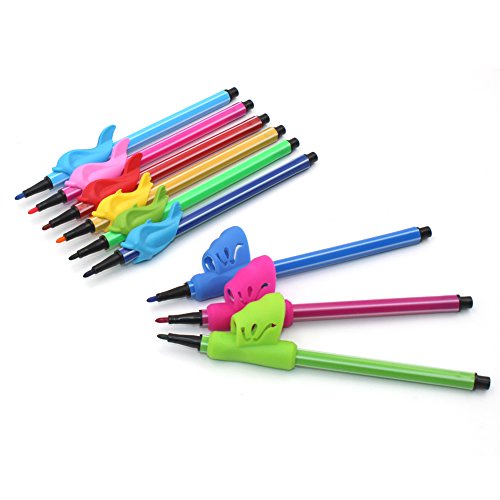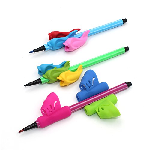 Firesara Bleistift Grips Silikon-Universal-Ergonomischer Handschreiben Klaue Aid Dolphin und Schmetterlings-Flugel-Design fur Rechtshander Kinder, Schuler Erwachsene Alten 9 Stuck