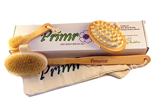 Get 3 Brushes with this Dry Body Brushing Set - Long Handle Body Brush; Face Brush and Cellulite Massager and a Storage Bag