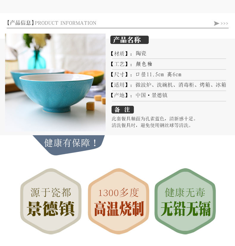 陶瓷米饭碗家用小汤碗学生吃饭面碗创意中式餐具套装景德镇菜碗