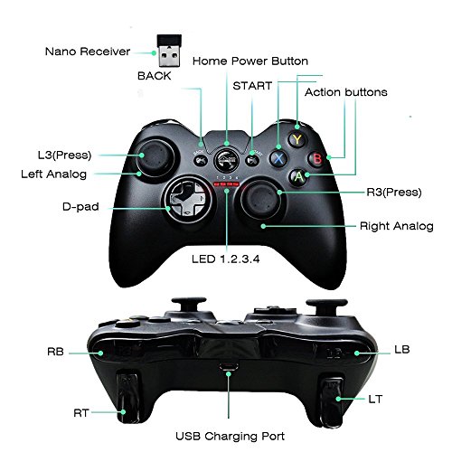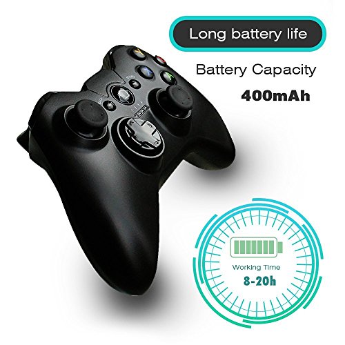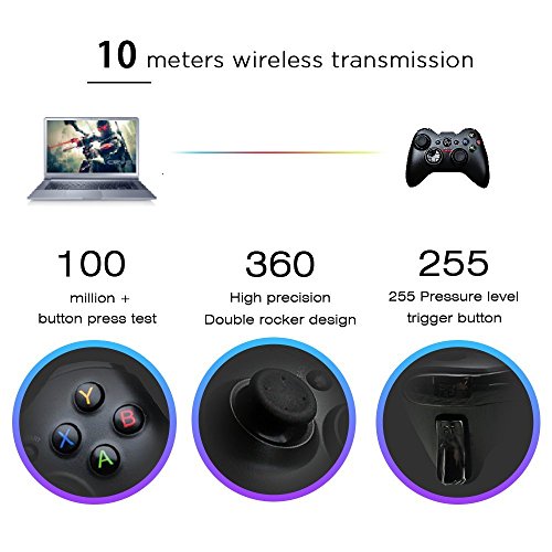 Fine dual analog joystick, precise cross key and action buttons, anti-sweat, anti-slip, anti-scratch. Using 2.4GHz RF wireless transmission technology, freely manipulated without delay within 25 feet(7-8 meters)