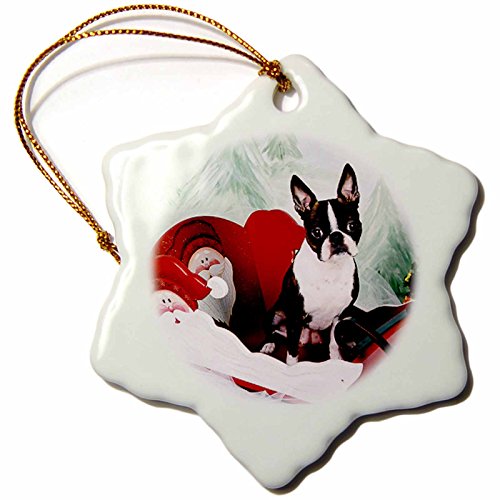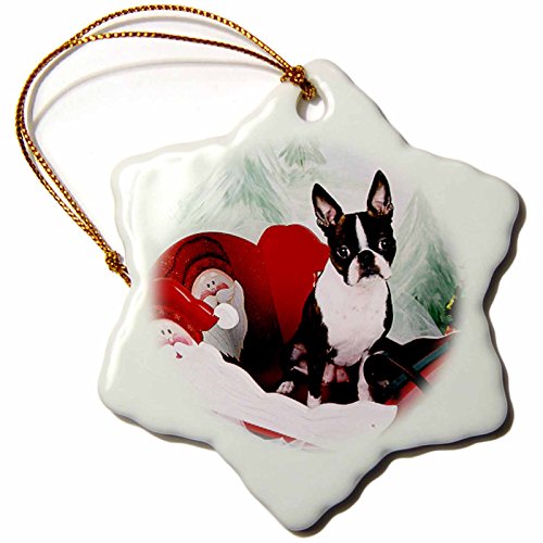 3drose Molly Boston Terrier Snowflake Porcelain Ornament, 3-Inch