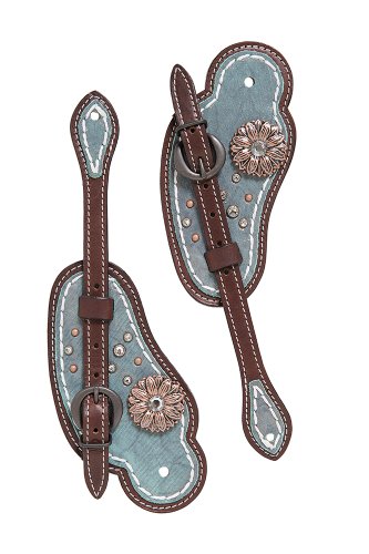 - Accented with antique copper flower conchos, Swarovski crystals, etched copper spots