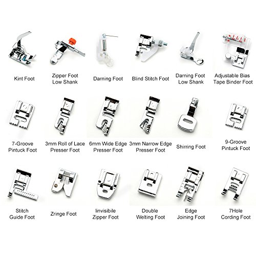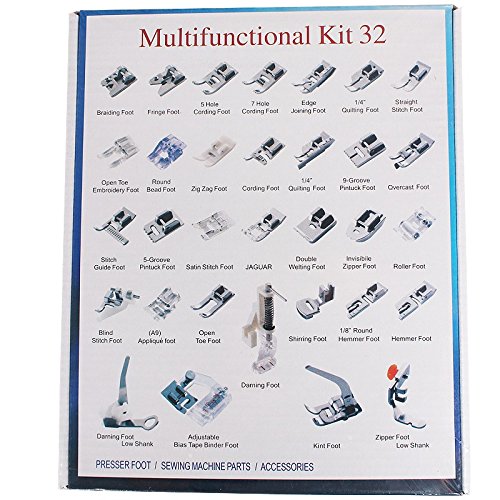 -. Feature : ❤ Best Combination Model :32 Piece Sewing Machine Presser Feet Kit Feet For Almost All Your Sewing Needles with Each Part Instructions in English / ❤ ADAPTER MODEL RICH : Suitable For ✅ Babylock ✅Janome ✅Brother ✅New Home ✅Singer ✅Kenmore ✅Simplicity ✅Elna ✅Toyota ✅Necchi Accessories Single Needle Sewing Machines.✅Will Also Fit Other Domestic Machines With A Low Shank System. / ❤ FREE SHIPPING By USPS Express ( This P.R.Ice,Only We Can DO IT FOR YOU , Possibly On The Amazon) , Logistics Tracking Information Can Be Query Real-Time , Security And Fast . / ❤ TOP QUALITY : With Premium ,Beautiful And Red Box, Each Part Has Its Own Location, Perfect And Orderly . Each Part Is Made Of The Best Materials, Can Be Used To Replace The Original Parts / ❤ 100% Satisfaction Guarantee : Your Satisfaction Is Our Responsibility . Any Quality Problems, Contact Us Free ,90 Days Money Back or Replacement Warranty for You