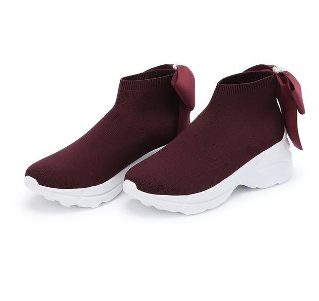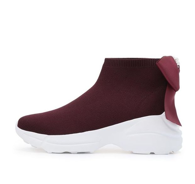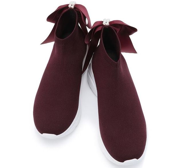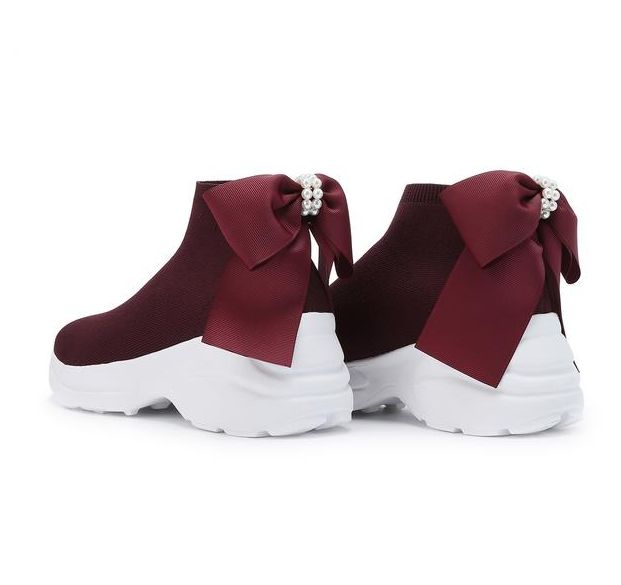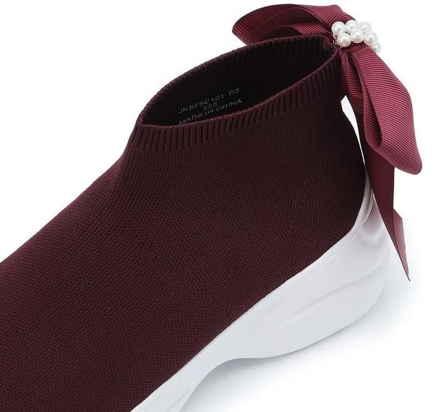 뒷면의 진주 장식을 더한 리본 스트랩을 포인트로 주어 여성스러운 외관을 연출했으며 삭스핏으로 밀착감을 높인 스니커즈입니다.