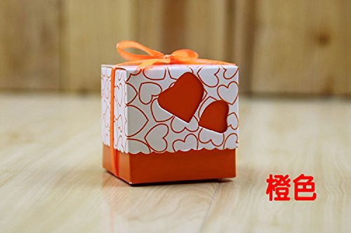 IGBBLOVE 50pcs Candy Box Wedding Favor Gift Boxes with Ribbon Sweet Hearts Cute Box (Orange)