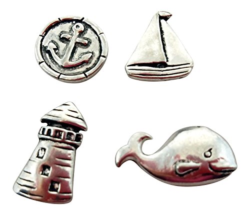 Nautical Refrigerator Magnets Set of 4: 1 Lighthouse, 1 Whale, 1 Anchor, 1 Sailboat