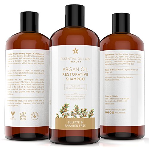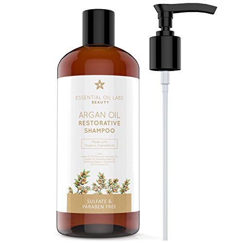 Argan Oil Shampoo, 16 oz., Made With Organic Ingredients, Restorative for all Hair Types, Color-Safe Shampoo, Sulfate & Paraben Free by Essential Oil Labs