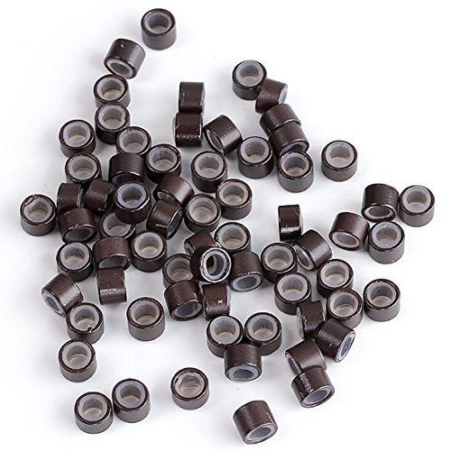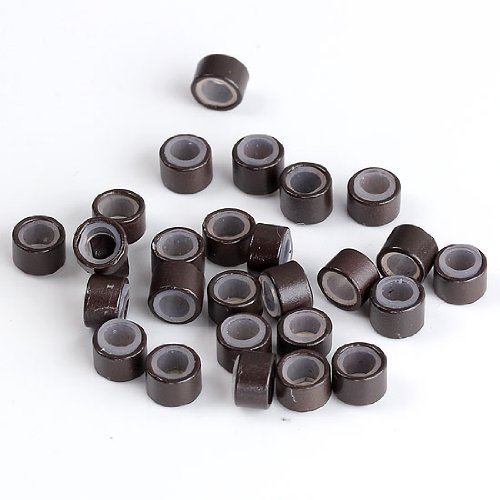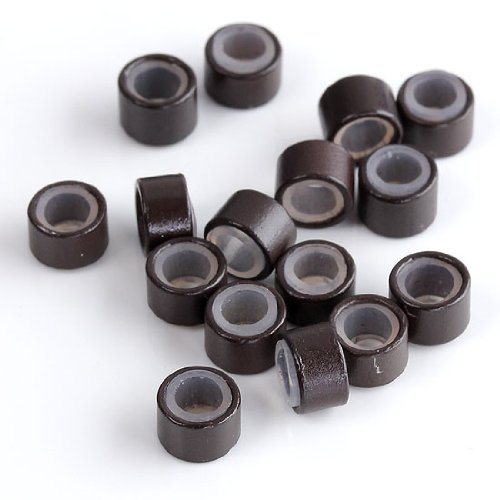 CCbeauty 500PCS 5mm Silicone Lined Micro Rings Links Beads for Hair Extensions,Brown