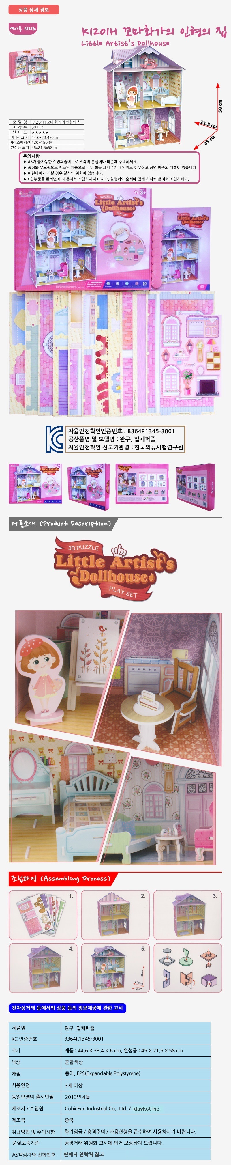 Toy 3D solid puzzle doll house - K1201h tiny painter