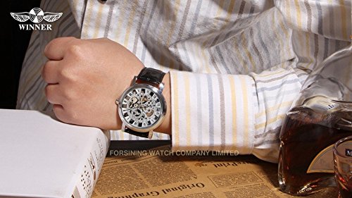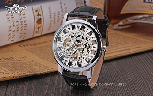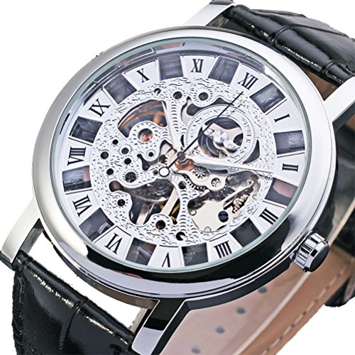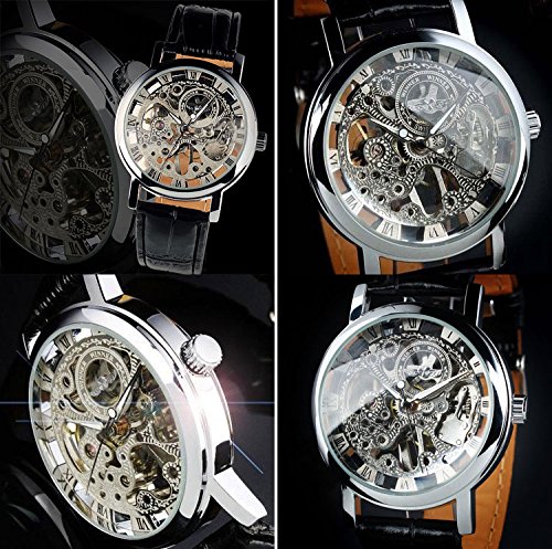 -. Title : GuTe Dress Mens Silver Skeleton Mechanical Wristwatch Hand-wind Steampunk See-through