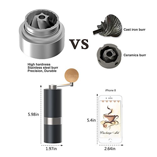 ★MORE THAN 5 YEARS LIFE - Manual burr coffee grinder with high harden stainless steel precision burr, can repeat grind more than 6000 times and the life is 6-10 times of the general, you can use it to make coffee for at least 5 years or longer
