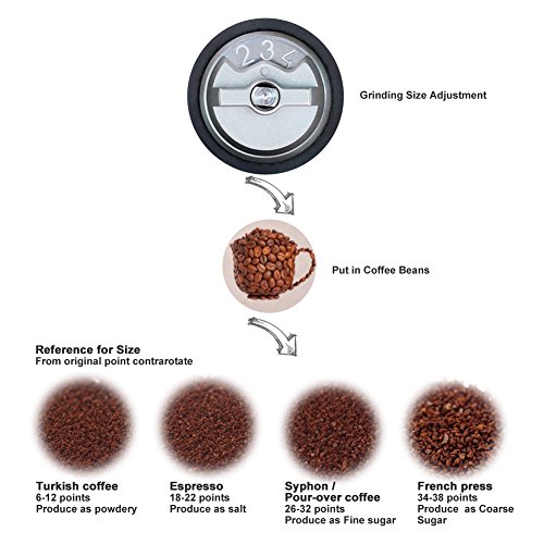 ★VISIBLE HOPPER AND SAVE LABOR - You can exactly filled 20gram beans and watch full of grinding process. Magnetic suction and ball handle design, you can grind easily, feel comfortable and relaxed