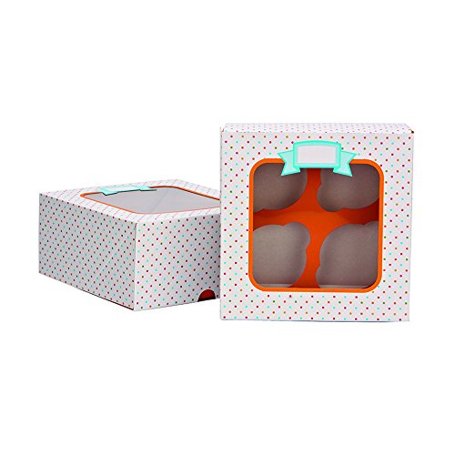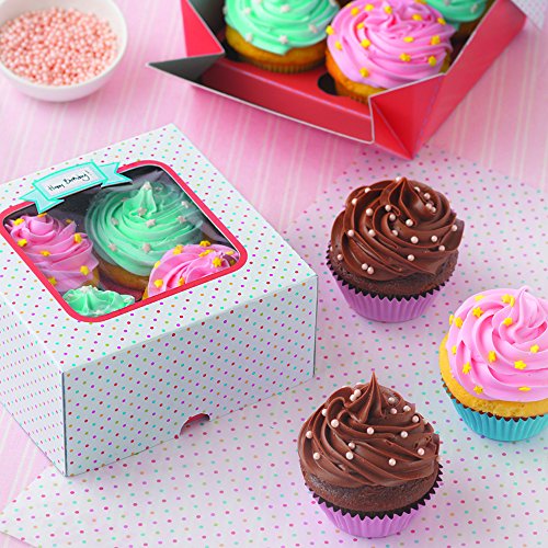 Sweet Creations 4-Cavity Colorful Dot Cupcake Boxes, Multi-Color, 2-Pack