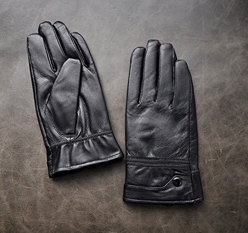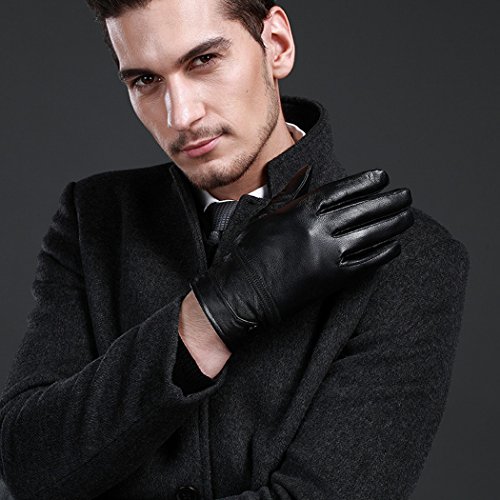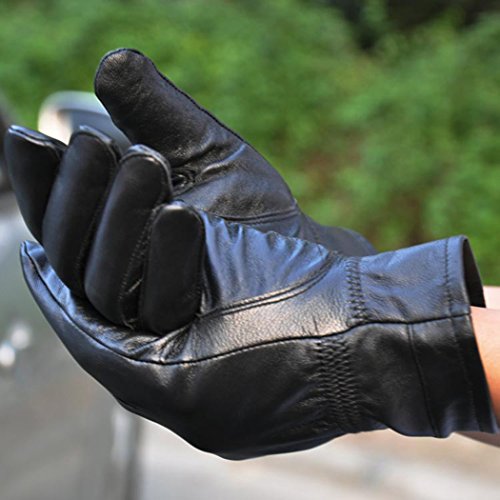Note:Measure the hand you normally write with at its widest point,excluding the thumb. Our leather gloves are slim fit design. Gloves would be snug at first but leather will stretch. Made of real leather with warm and soft plush lining,offer a unique mix of practical design and directional style, keep your hand warm,and protect your hand when going outside in cold weather conditon.try this fashion warm gloves by HINY,enjoy your winter season. 0