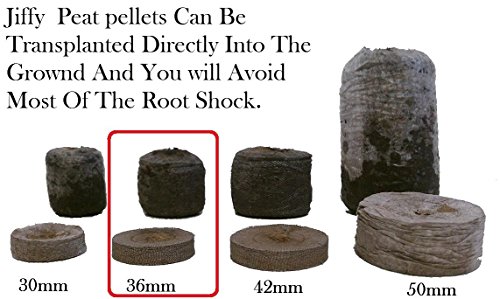 Root Naturally Jiffy peat pellets are Ideal for starting your seeds without any mess. All you have to do is just add water and the pellet will expand once the pellet has expanded you can plant your seed. The pellet has a thin net holding it together. Once your plants are ready to be transplanted all you have to do is transplant directly into the ground or container and you will minimize transplant shock and root damage. This pellet is a 36mm and will expand (1.50in x 1.50in.)