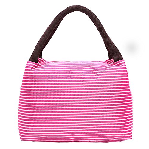 BESTCYC Solid Useful Linen Cotton Nylon Stripe Lunch Bag Tote Bag Lunch Organizer Lunch Holder Lunch Container Grocery Bags with Zipper